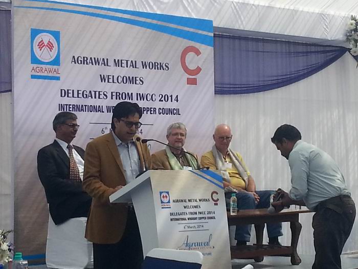 2014年IWCC(國際銅加工協會)技術年會于3月2日至7日在印度孟買舉行,出席會議的包括IWCC會員單位,國際銅加工行業中的高端技術型企業,公司總經理駱偉棟先生應邀參加此次盛會。2014年IWCC技術年會現場 本次年會主題為“軋制板帶材及其他產品”,圍繞印度銅板帶材的鑄造、軋制、熱處理以及銅帶的電鍍等技術展開交流,會議期間各國銅加工企業還就當今行業中最新的銅加工技術和科技新產品進行了研討。參會代表們參觀了印度生產板帶材產品的企業:Rashtriya板帶廠、梅塔銅管廠和阿哥拉瓦爾五金廠,紫銅/黃銅汽車散熱器廠和黃銅鎖鑰廠,充分展示了印度軋制板帶先進的加工工藝。總經理駱偉棟應邀參加IWCC年會