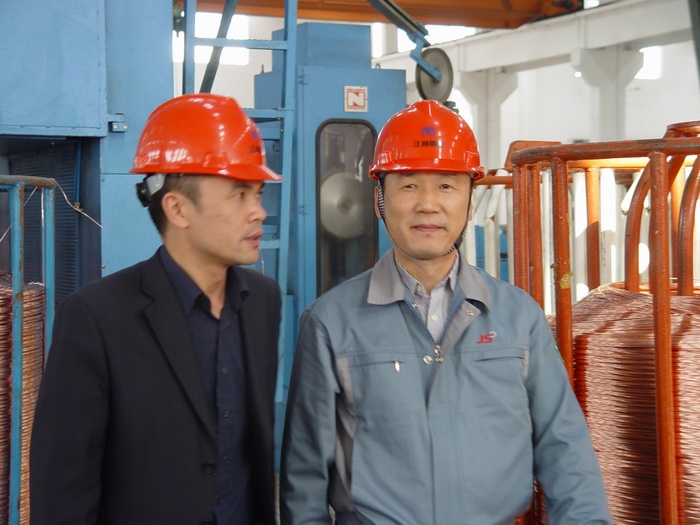 2010年10月15日,JS電纜(江蘇)有限公司金董一行來江潤銅業(yè)考察訪問,分別參觀了SCR-7000銅連鑄連軋生產(chǎn)車間、復(fù)合銅線車間、銅絞線車間。江潤銅業(yè)先進(jìn)的設(shè)備、優(yōu)質(zhì)的產(chǎn)品給金董留下了很深的印象。JS電纜是韓國LS集團(tuán)下屬子公司,產(chǎn)品涉及船舶用、深海用、移動電梯用等橡套特種電纜,在同行業(yè)中排名全球第五、亞洲第一。江潤銅業(yè)與JS電纜有著多年的業(yè)務(wù)往來。